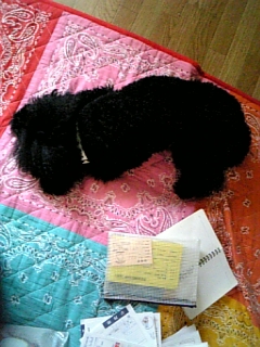 家計簿ならぬ犬計簿を記入してたらBeeさんはベッドで寝ないで