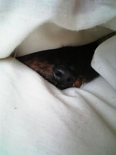 寝相が悪くてもう何が何やらな状態で爆睡(゚m゚*)プッ